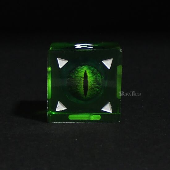特許技術を使用し、サイコロ内部にドラゴンの眼球を入れ眼球が前を向くように配置したダイスセットです。