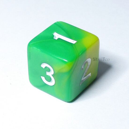 マーブル【グリーン・イエロー&白】6面サイコロ/UD2310d6004