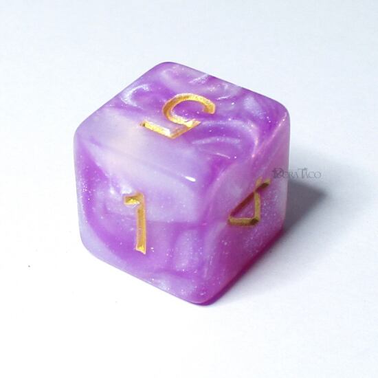 ラメマーブル【紫・白&金】6面サイコロ/UD2310d6013