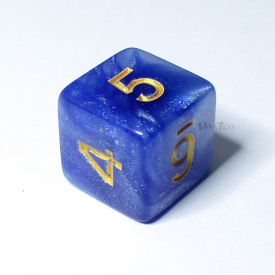 ラメマーブル【青・白&金】6面サイコロ/UD2310d6018