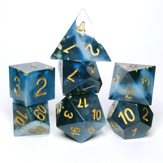 マーブル模様【ダークブルー&ゴールド】多面体ダイスセット H2403set02