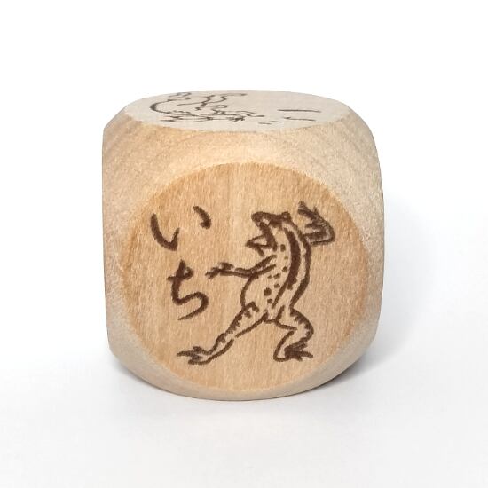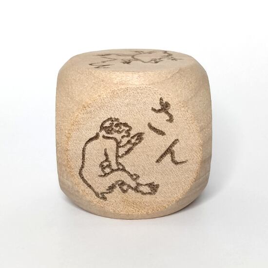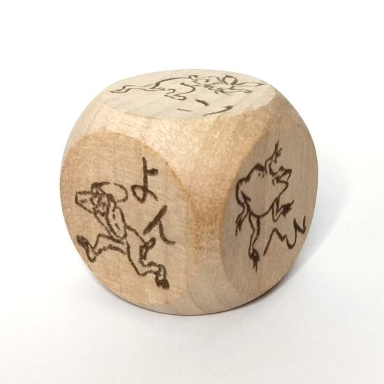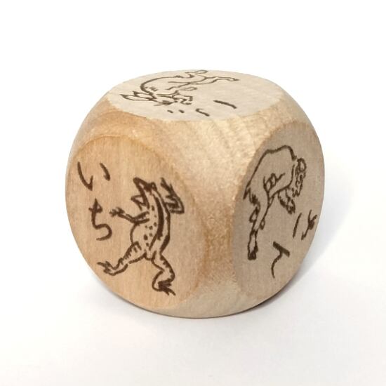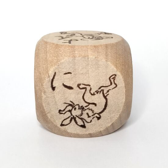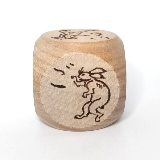 漫画の始祖「鳥獣戯画」の甲巻に登場する兎・猿・蛙をあしらった木製6面サイコロ。