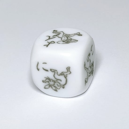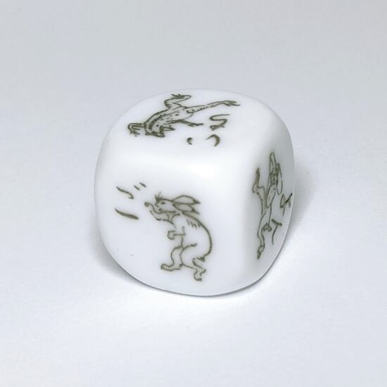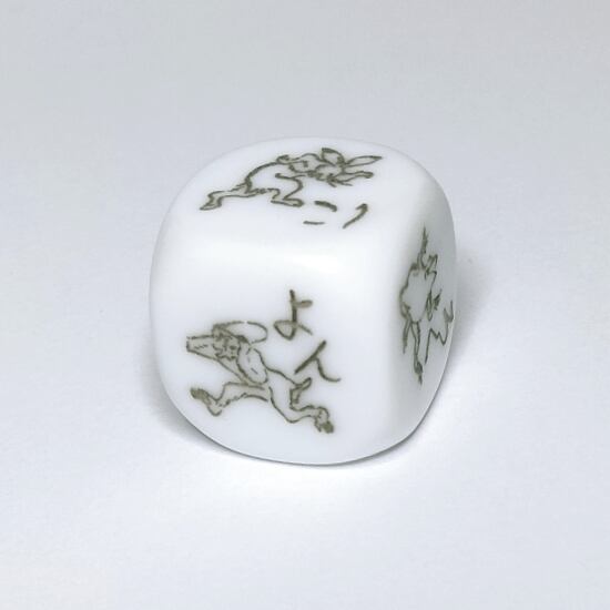 漫画の始祖「鳥獣戯画」の甲巻に登場する兎・猿・蛙をあしらった6面サイコロ。