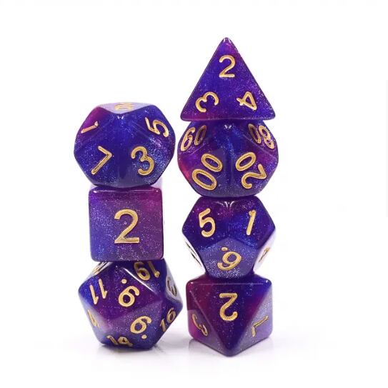 ラメ加工【ブルーパープル&ゴールド】多面体サイコロ7個セット 24HDAR36