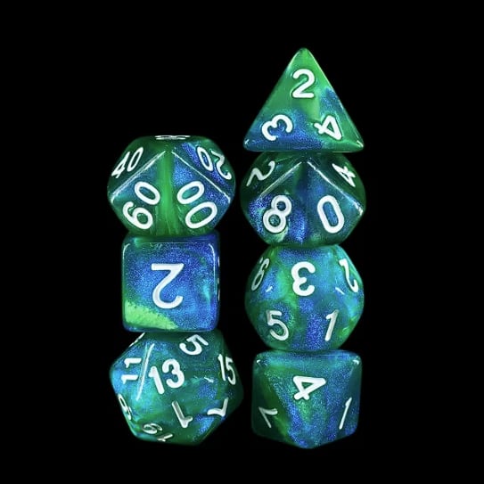 ラメ加工【妖精の森】多面体サイコロ7個セット 24HDAR41