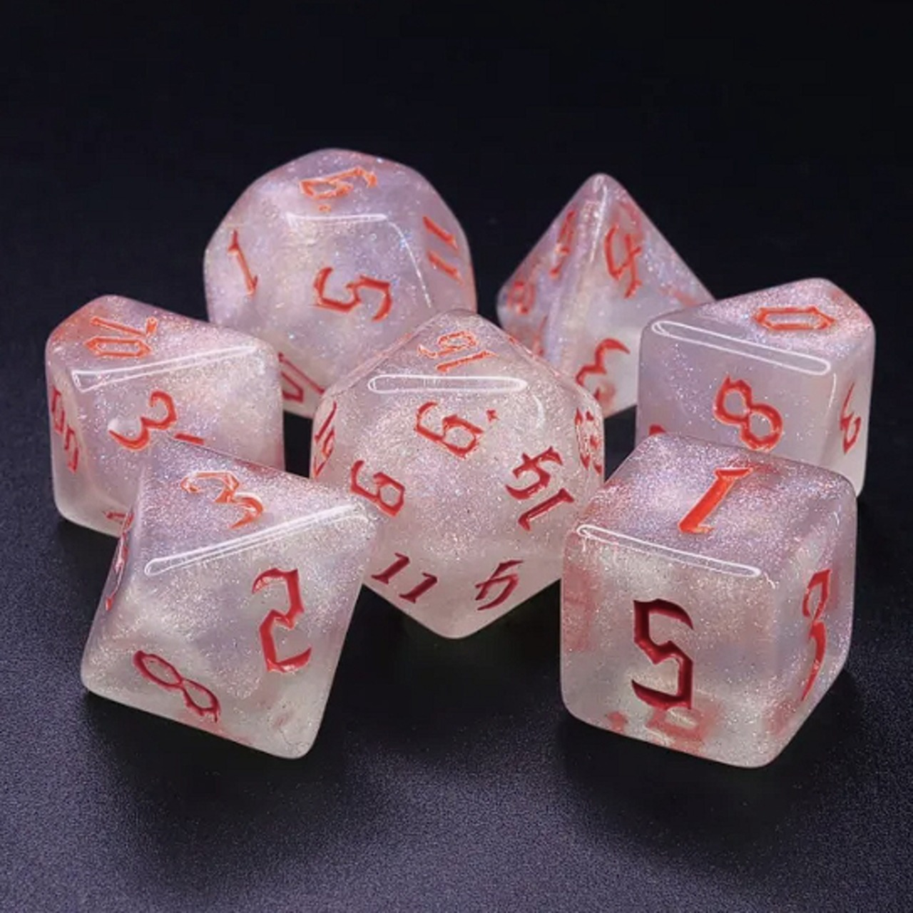 ラメ加工【カオスレッド】多面体サイコロ7個セット 24HDAR67