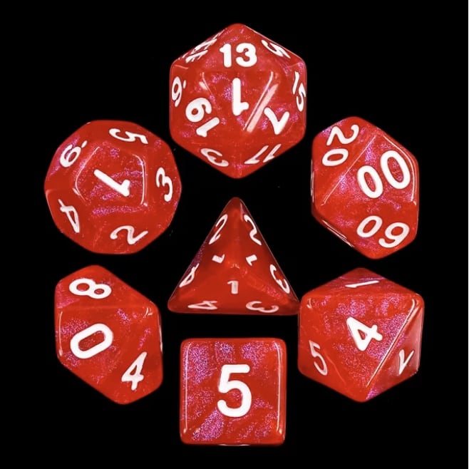ラメ加工【レッド】多面体サイコロ7個セット 24HDAR88