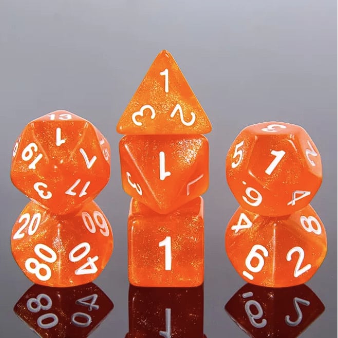 ラメ加工【オレンジ】多面体サイコロ7個セット 24HDAR100