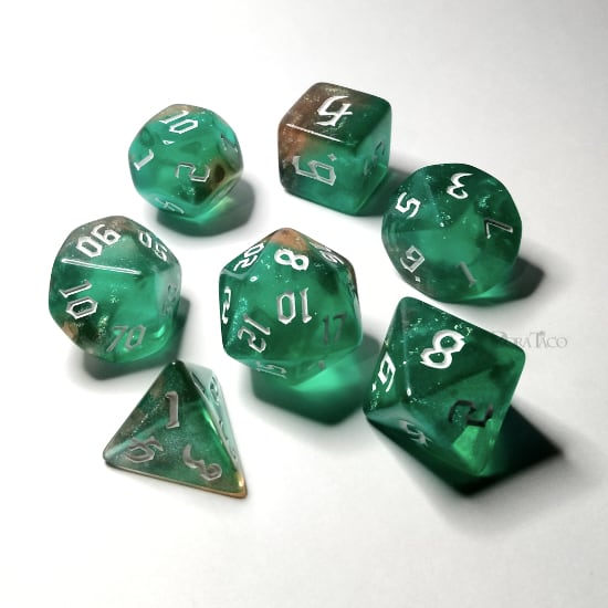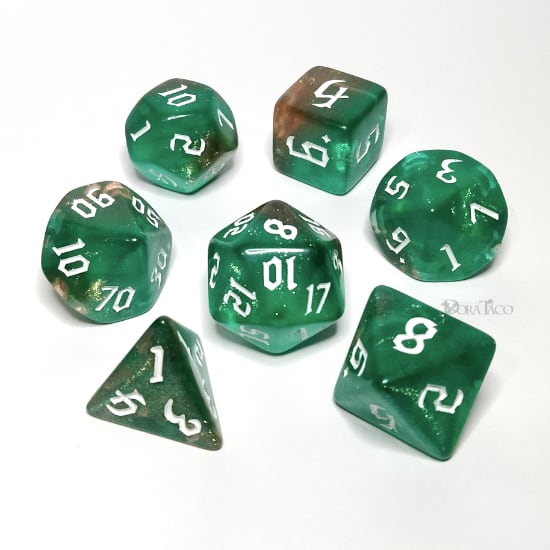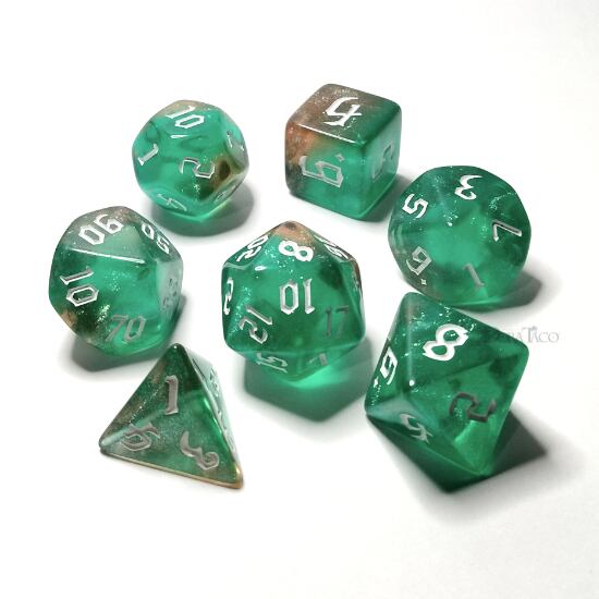 ラメ加工【グリーンワールド】多面体サイコロ7個セット 24HDAR72