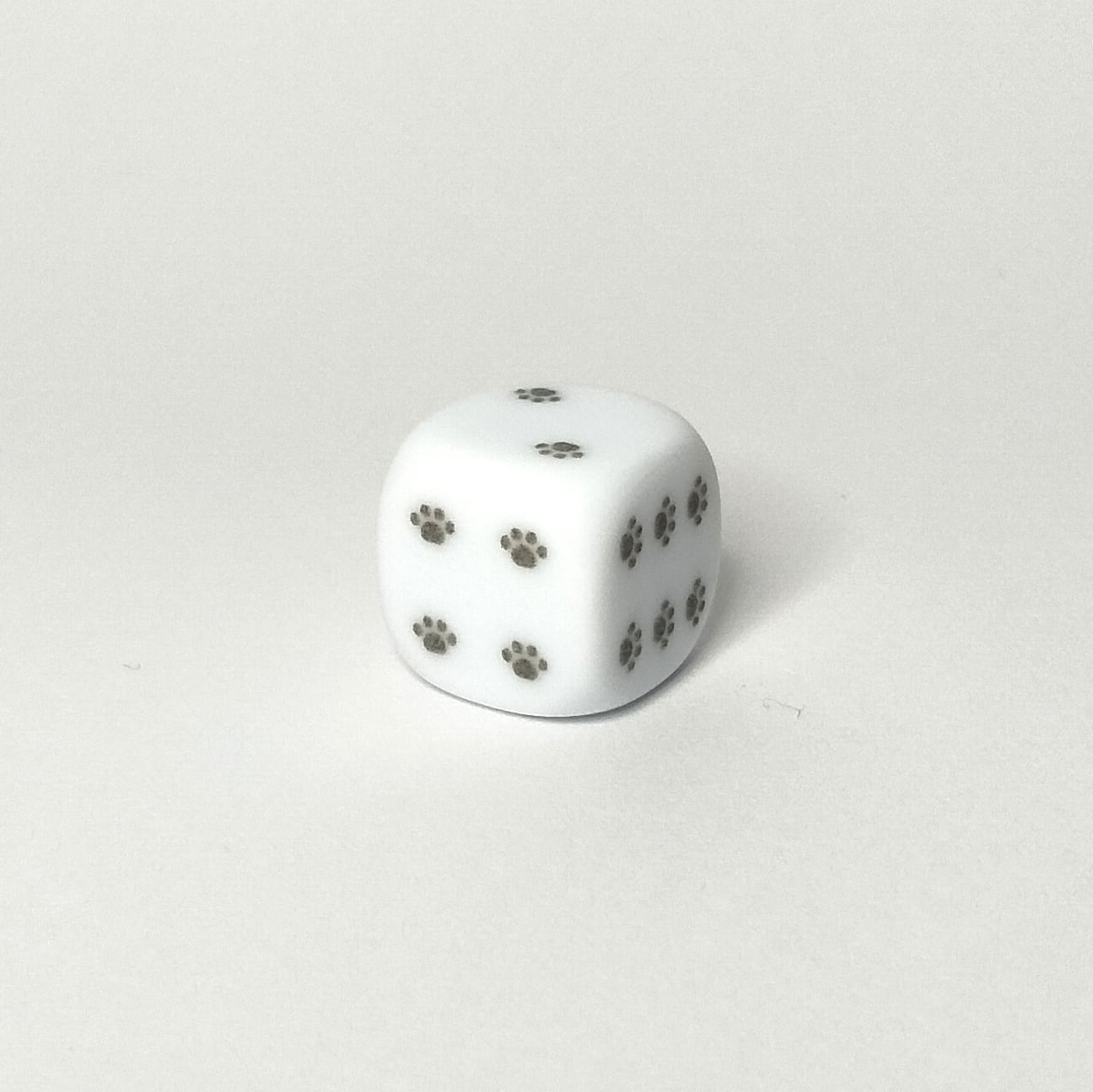 ねこ【12mm白・レーザー刻印】6面サイコロ単品 DTD12mm01